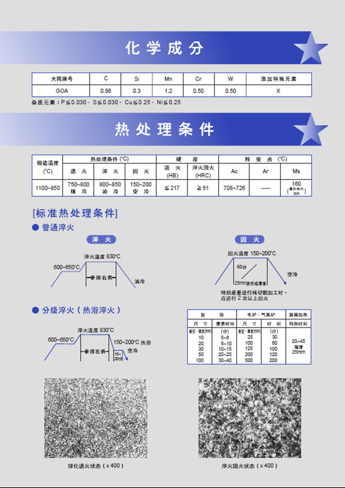 日本大同G0A冷作模具鋼:油冷淬硬模具鋼