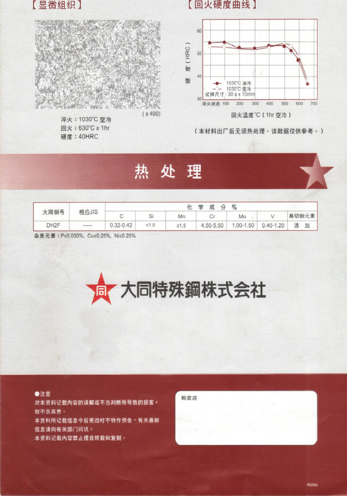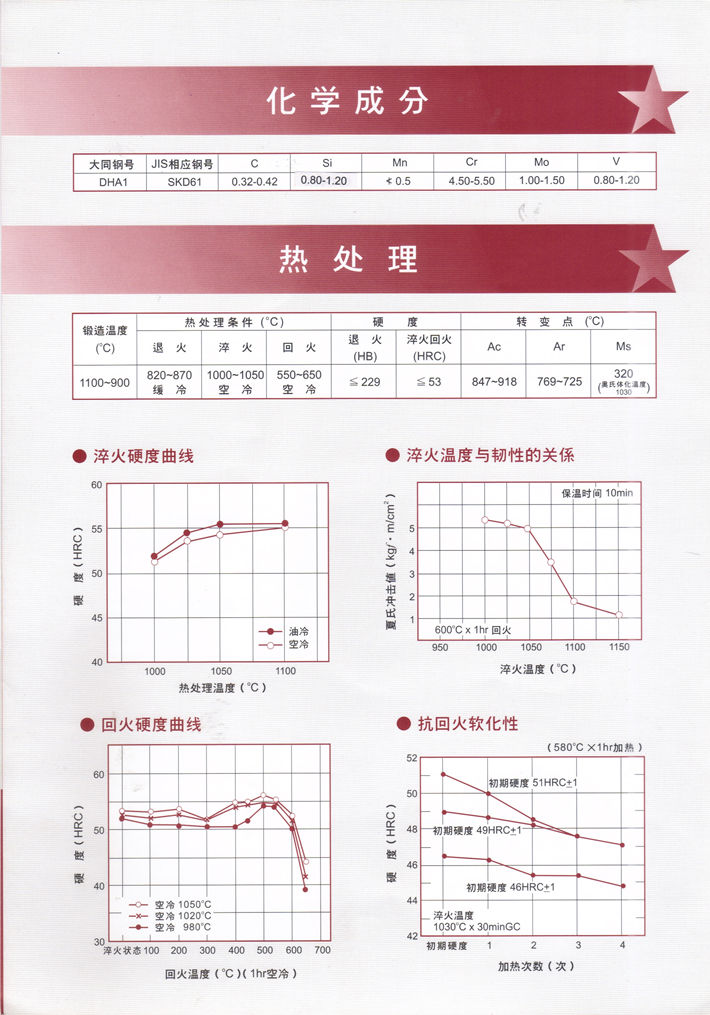 日本大同DHA1(SKD61)熱作模具鋼:通用熱作模具鋼
