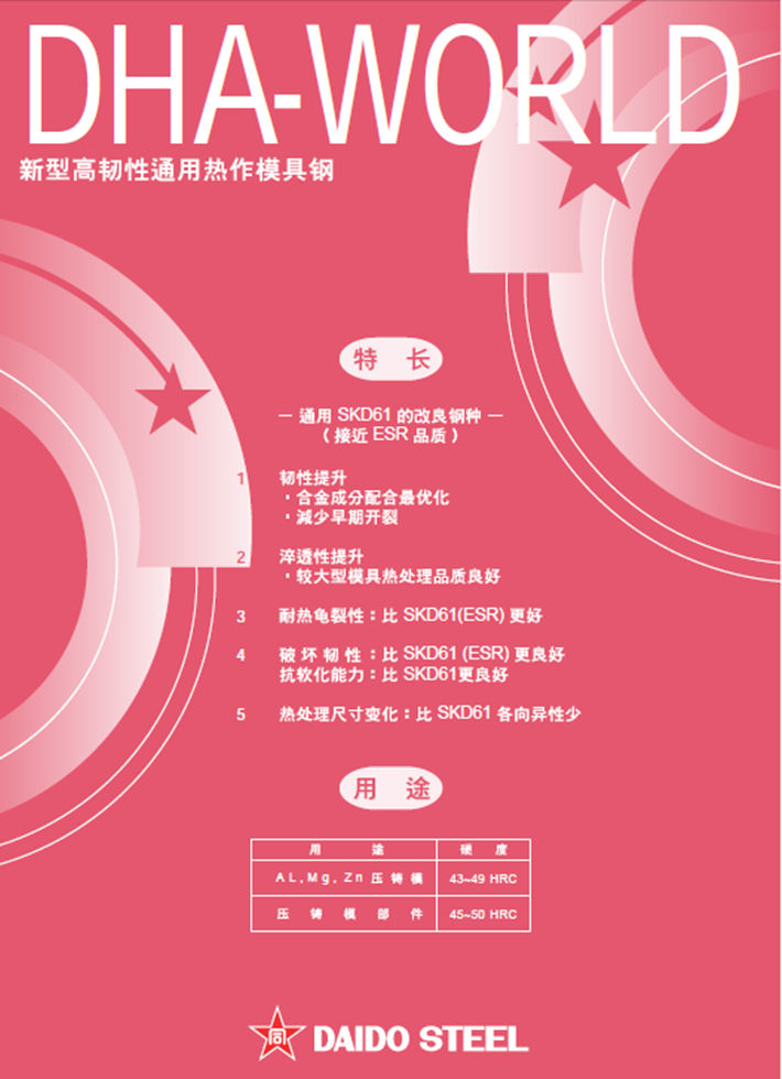 日本大同DHA-WORLD熱作模具鋼:高韌性*高淬透性通用熱作模具鋼