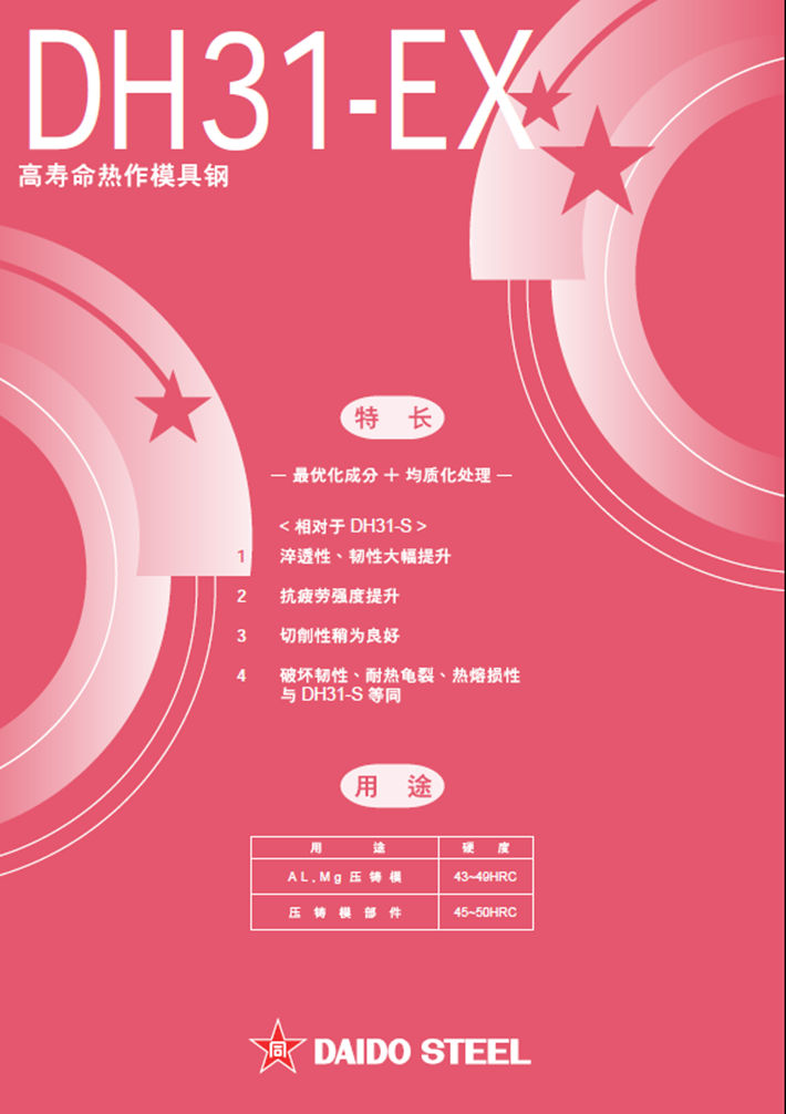 日本大同DH31-EX熱作模具鋼:高韌性*高溫強(qiáng)度*淬透性改良鋼