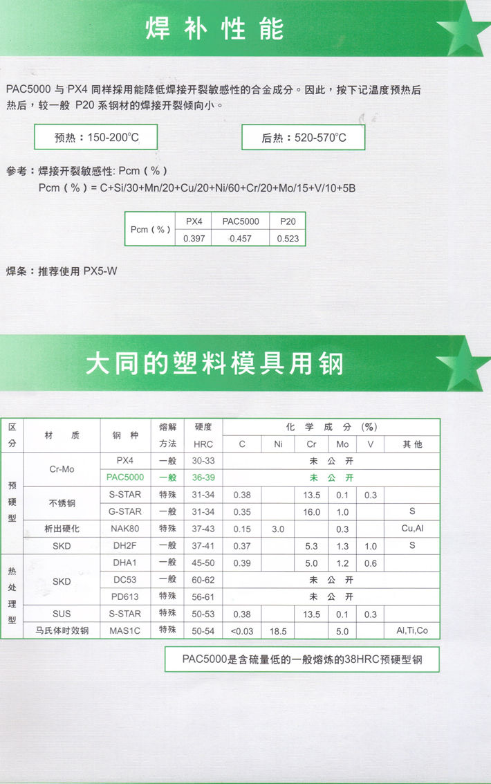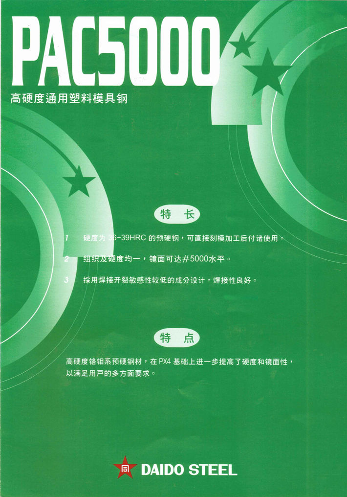 日本大同PAC5000塑料模具鋼:高硬度通用塑料模具鋼